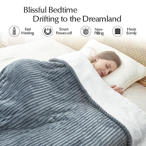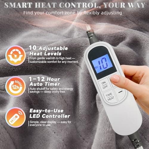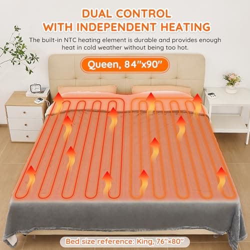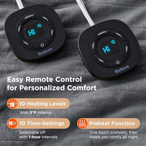 Bedsure Electric Blanket Queen Size - Dual Control Heated Blanket Queen, GentleSoft Fast Heating with 10 Time Settings & 10 Heat Settings, Warm Gift for Grandma (84x90 inches, Grey)