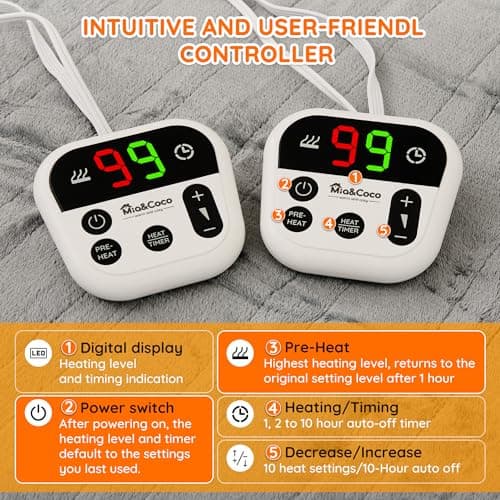 Molatink Electric Blanket Queen Size Heated Blanket 90''X84'' - Fleece Heating Blankets Washable with 5 Heating Level & 10 Hour Auto Off Dual Zone Control Heated Blankets for Winter, Great Gift Ideas