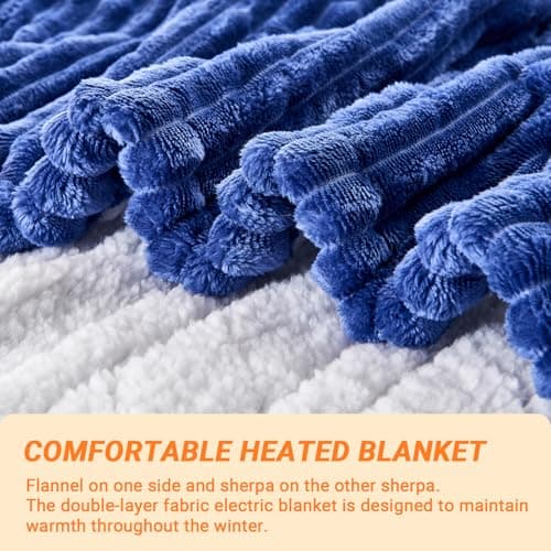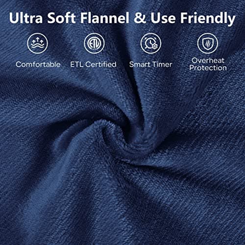 Electric Blanket 62X84in Heated Blanket Twin Size - Fleece Heating Blanket Washable with 5 Heating Level & 10 Hour Auto Off for Office, Chair Heated Blanket for Winter, Great Gift Ideas(Navy Blue)