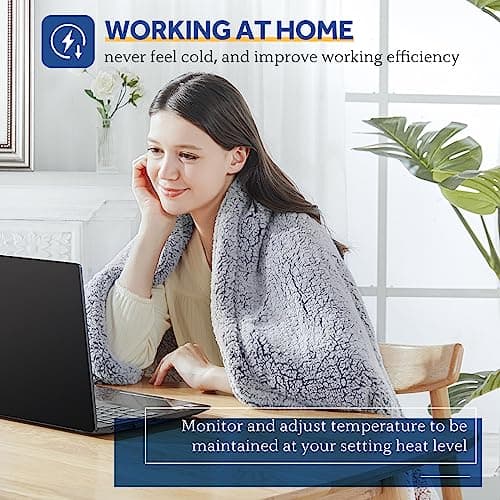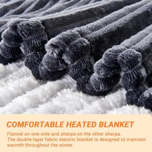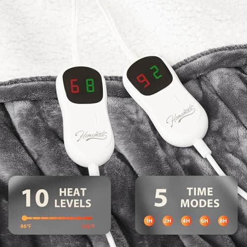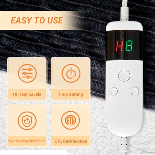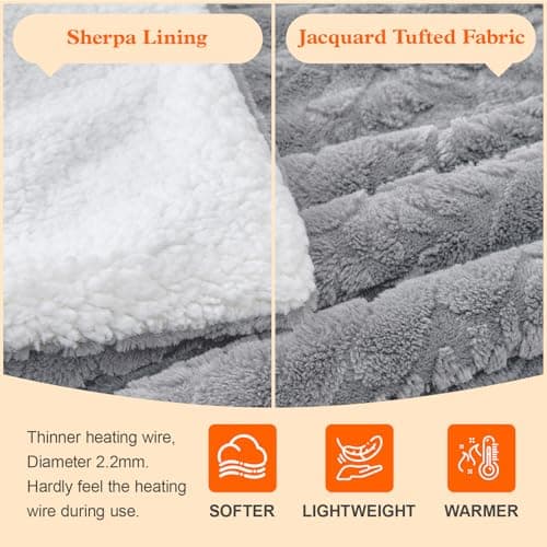Homemate Heated Blanket Electric Throw - 50"x60" Heating Blanket Throw 1/2/4/6/8 Hours Auto-Off 10 Heat Level Over-Heat Protection Flannel Sherpa ETL Certification