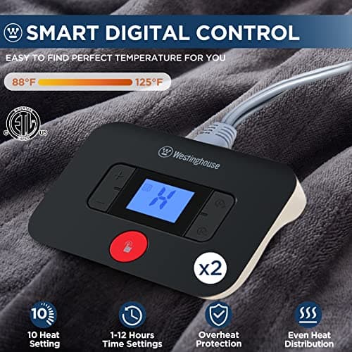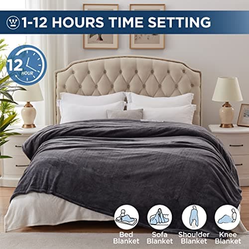 Westinghouse Electric Blanket Queen Size, Super Cozy Soft Flannel 84"" x 90"" Heated Blanket with 10 Fast Heating Levels & 1-12 Auto-Off, Machine Washable, ETL&FCC Certification, Charcoal