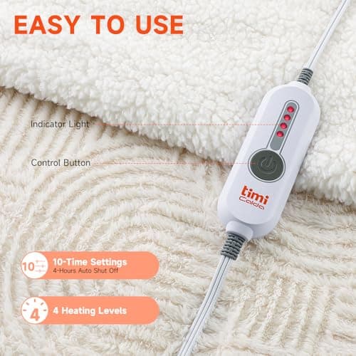 Thermylux Electric Blanket Full 72"x84" Heated Electric Blankets 10 Heating 12 Time Settings Levels 8 Hours Auto Off Fast Heating and Overheat Protection ETL Certified Machine Washable,Ivory