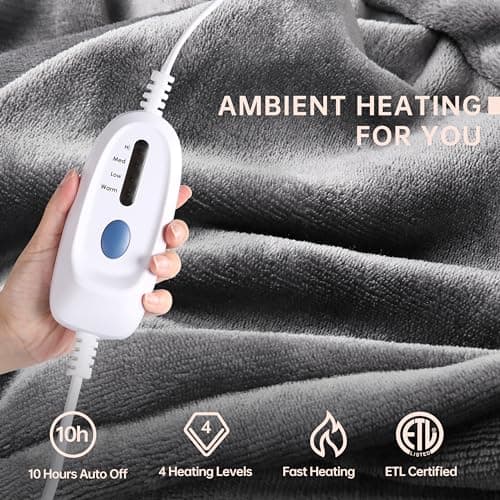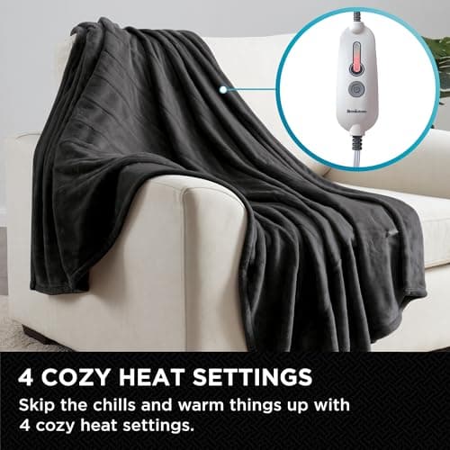 SNUGSUN Heated Blanket Throw Size, Soft and Cozy Electric Heating Blanket for Bed, Automatic Safety System 6 Heating Levels & 4 Hours Auto-Off, 50" x 60" Dark Grey