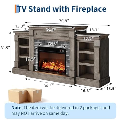 LGHM 72" Electric Fireplace with Mantel, Fireplace TV Stand for TVs Up to 80 Inch, Modern Entertainment Center with Storage, Fireplace Heater Insert with Realistic 3D Flame for Living Room