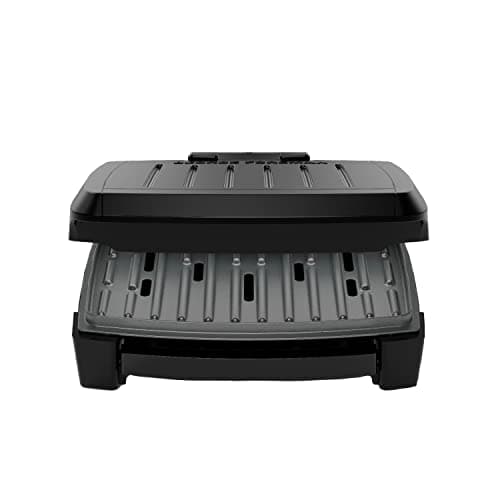 George Foreman 4-Serving Removable Plate Electric Grill and Panini Press, George Tough Non-Stick Coating, Drip Tray Catches Grease, Black