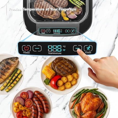 This refinement focuses on buyers who care most about indoor smoke control. Use it when apartment friendliness and easier ventilation are more important than maximum searing intensity or broad combo functions.