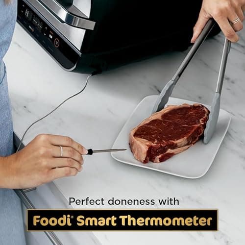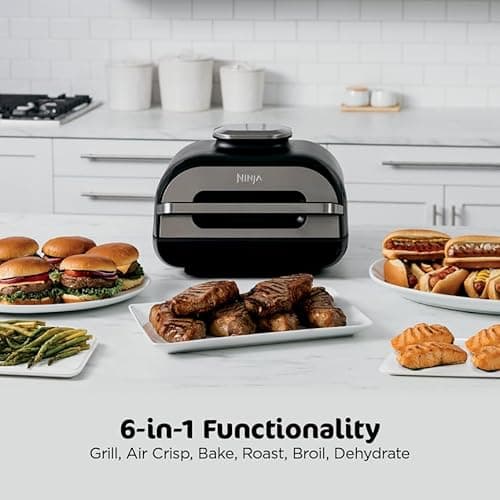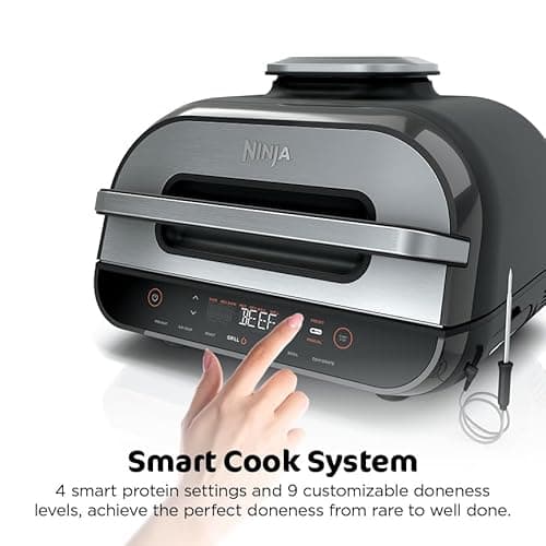 Ninja | Indoor Grill and Air Fryer| Foodi Smart XL | 6-in-1 Grill, Air Fry, Roast, Bake, Broil, Dehydrate & Crisp |Smart Thermometer & Splatter Shield | Dishwasher Safe Parts | Black/Silver | FG551