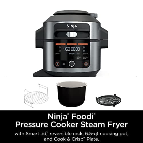 Ninja OL501 Foodi 6.5 Qt. Pressure Cooker Steam Fryer with SmartLid, 14-in-1 that Air Fries, Bakes & More, with 2-Layer Capacity & 4.6 Qt. Crisp Plate, Silver/Black (Renewed)
