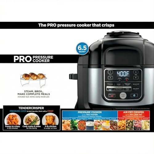 Foodi 10-in-1 Pressure Cooker & Air Fryer, 6.5-Qt Stainless Multicooker with TenderCrisp Technology & Nonstick Pot for Family Meals