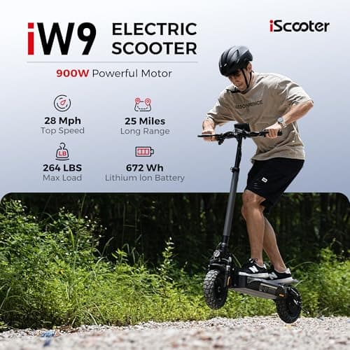 iScooter iX3 Electric Scooter,800W Motor E-Scooter Up to 25 Miles Range, Top Speed 25MPH,10" Off Road Pneumatic Tires, Adjustable Handlebar Height, Folding Commuting Escooter for Adults