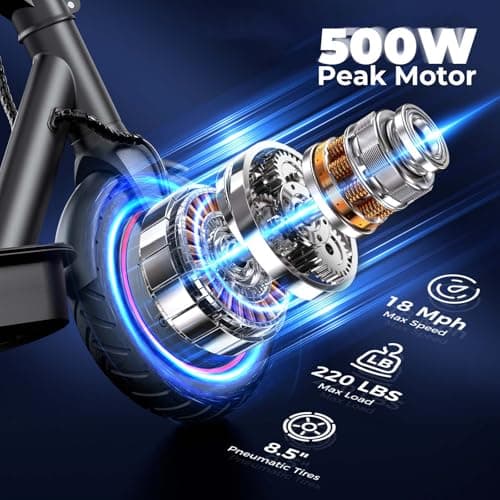Escoone Electric Scooter for Adults, 18 MPH Top Speed, 12 Miles Range, 350W Motor, Foldable Escooter with 8.5" Pneumatic Tires, Cruise Control & Dual Braking, Commuter E-Scooter for Adults & Teens
