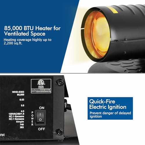 80,000 BTU Battery Operated Kerosene/Diesel Radiant Heater with Thermostat