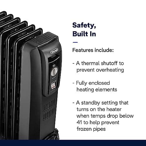 De'Longhi Oil filled Radiator Heater, 1500W Electric Space Heater for indoor use, portable room heater, Energy Saving, full room like office and bedroom with safety features, EW7707CM