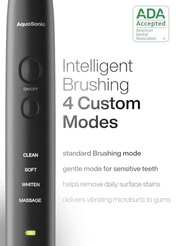 Aquasonic Black Series Ultra Whitening Toothbrush – ADA Accepted Electric Toothbrush- 8 Brush Heads & Travel Case – 40,000 VPM Electric Motor & Wireless Charging - 4 Modes w Smart Timer
