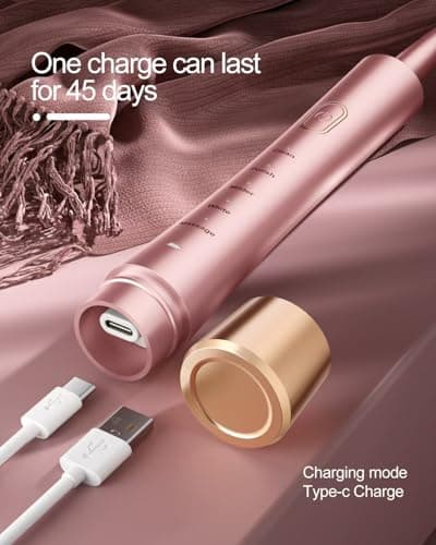AJELU Sonic Electric Toothbrush for Adults, USB Rechargeable Sonic Toothbrush with 8 Brush Heads, Smart Timer, 5 Modes, 2-Hour Fast Charge Last 30 Days, Pink