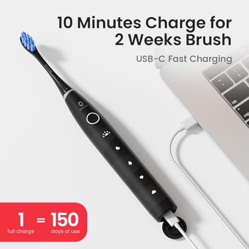 Oclean Electric Toothbrush for Adults, 150 Days Battery Life Electric Toothbrush, USB Rechargeable Sonic Travel Toothbrush with 6 Brush Heads & Travel Case, 5 Modes and Smart Timer