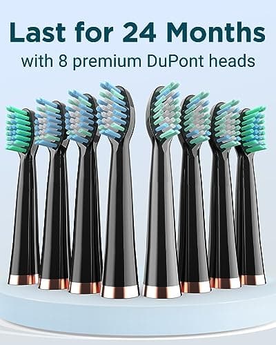 Sonic Electric Toothbrush for Adults - Rechargeable Electric Toothbrush with 8 Brush Heads & Travel Case,Teeth Whitening, Power Electric Toothbrush with Holder, 3Hours Charge for 120 Days - Black