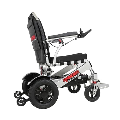 Porto Mobility Ranger Discovery Lightweight Foldable Weatherproof Exclusive Electric Wheelchair, Portable, Brushless Powerful Motors, Dual Battery, All Terrain (Silver, Standard)