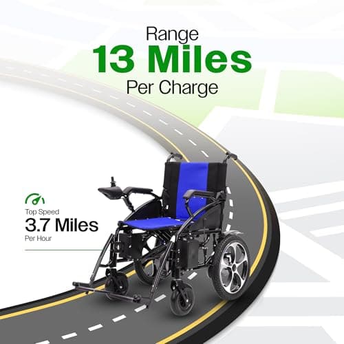 All Terrain Travel Electric Wheelchair for Senior, Adults, Heavy Duty Power Wheelchair, 2x250 Motor Foldable Electric Wheelchairs, Power Wheelchair, Silla de Ruedas para Adultos Electrica, (Blue)