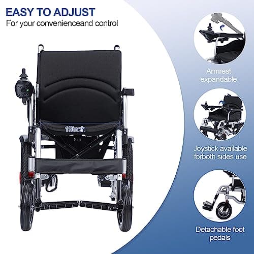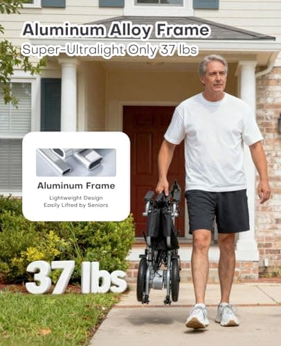 37lbs Lightweight Foldable Electric Wheelchair, Portable Motorized Power Chair for Adults & Seniors, 220lbs Heavy Duty, Brushless Dual Motors, Travel-Friendly Folding with Removable Lithium Battery