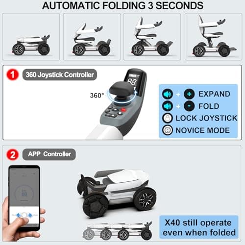 Intelligent Electric Powered Wheelchair Device, Automatic Folding, Remote Controlled, Smart, Compact Heavy Duty Mobile, Powerful Dual Motor, Foldable Portable Motorized Mobility Scooter