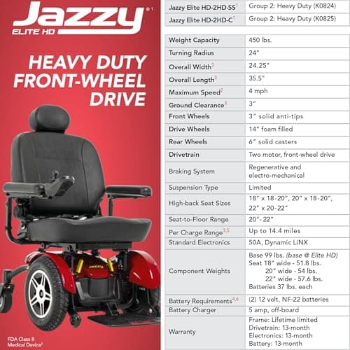 Pride Mobility Jazzy Elite HD Group 2 Heavy Duty Power Chair, Front Wheel Drive, Motorized Electric Wheelchair for Adults, 450 lbs. WC, Up to 4 MPH, 12.5 Miles Range Per Charge