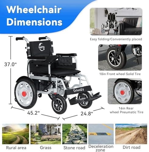 DriveEy Electric Wheelchairs for Adults,All Terrain Electric Wheelchair Heavy Duty,2x250W Power Wheelchair,Foldable Motorized Wheelchairs for Senior,Compact Portable Wheelchair, Black