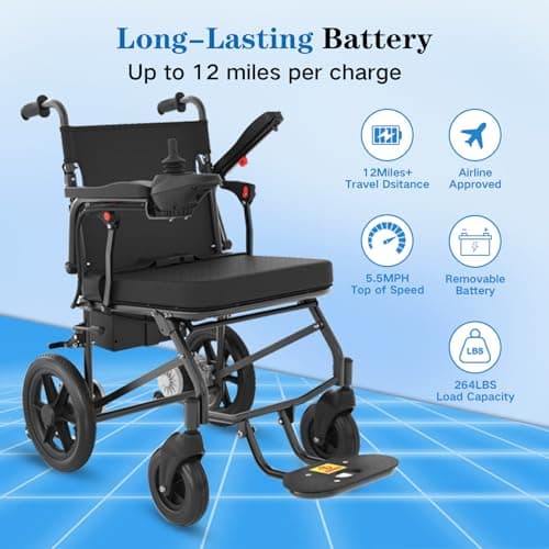Electric Wheelchairs for Adults Lightweight Foldable, Collapsible Power Motorized Wheelchair, One-Click Mute Function and SOS Alert Button, 10 mi Cruise Range, Airline Approved