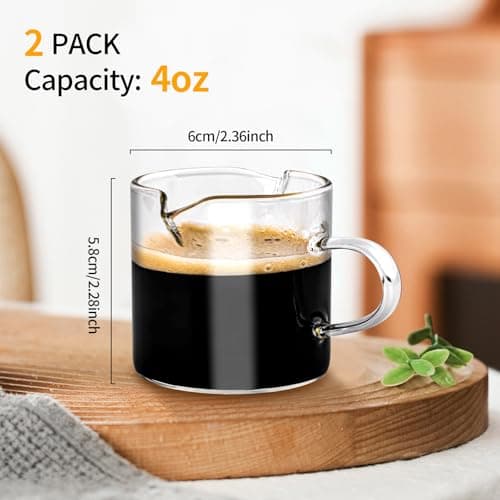 Qipecedm Espresso Cups Set of 2, 4 OZ Double Spouts Cups, Shot Glasses, Milk Cup with Handle, Clear Glass, Espresso Accessories for Machine, Small