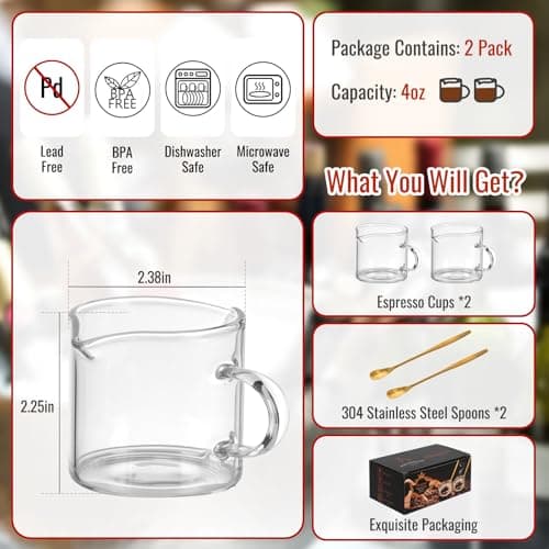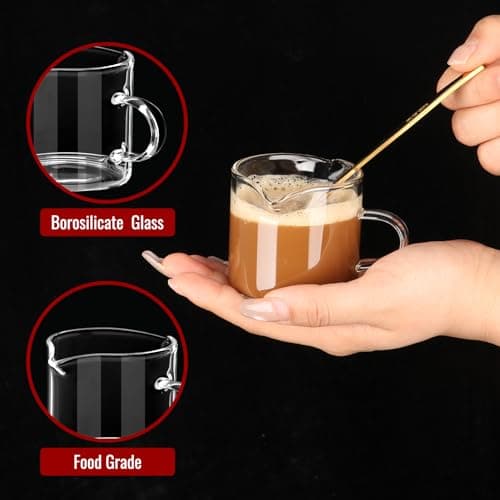 Ackers Clear Espresso Cups Set of 2,4 OZ Double Spouts Cups,Milk Cup with Handle, Espresso Accessories for Machine, Small