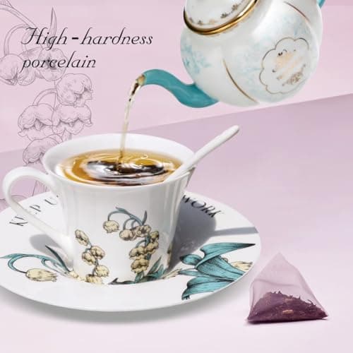 Tea Cup Set With 2 Tea Cups 2 Saucers And 2 Spoon 7 OZ Espresso Coffee Mug Vintage Creativetea Teacup And Saucer Set For Coffee,Tea,Latte, Cappuccino