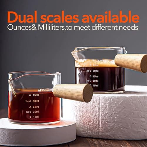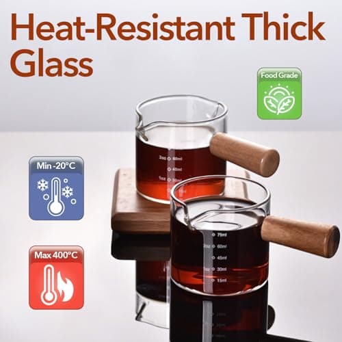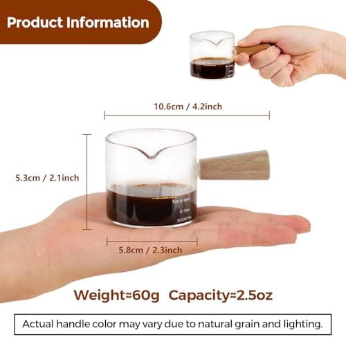 YARRAMATE 2.5 oz/75ML Espresso Shots Cup with Wood Handle, Clear Glass Espresso Measuring Cup with Dual Scale, Shot Glass with Single Spout, Dishwasher Safe