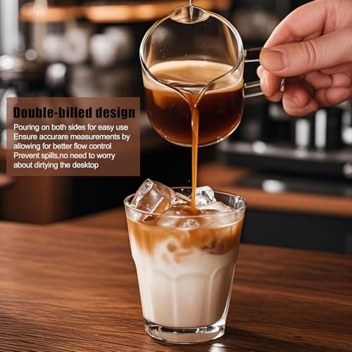 Espresso Cups Set of 2, 4 Oz Espresso Shot Glass with Handle Double Spout Cups Clear Glass Milk Cup Coffee Accessories Great for Making Coffee Desserts Salad Dressing