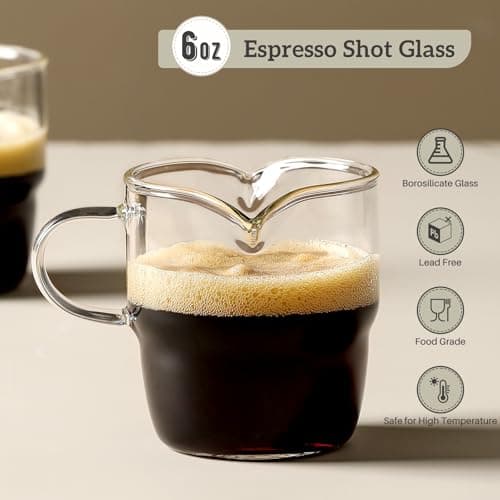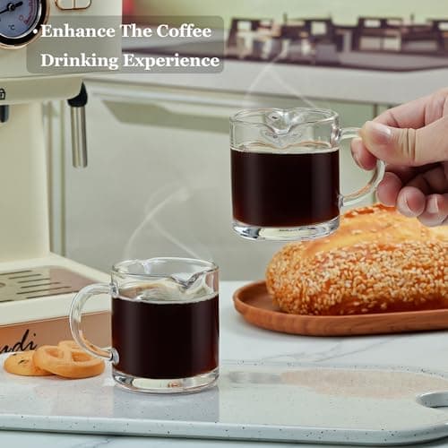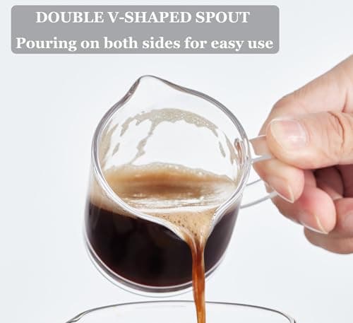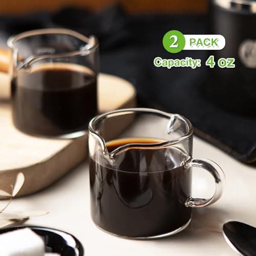 Qipecedm Espresso Cups Set of 2, 4 OZ Double Spouts Cups, Shot Glasses, Milk Cup with Handle, Clear Glass, Espresso Accessories for Machine, Small
