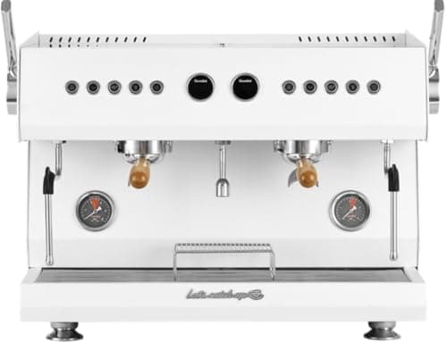 Commercial 2-Group Volumetric Espresso Machine for Restaurant and Café Use, Stainless Steel and Copper Construction, 220V, White