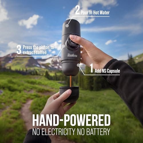 WACACO Minipresso GR, Portable Espresso Machine, Compatible Ground Coffee, Hand Coffee Make, Travel Gadgets, Manually Operated, Perfect for Camping