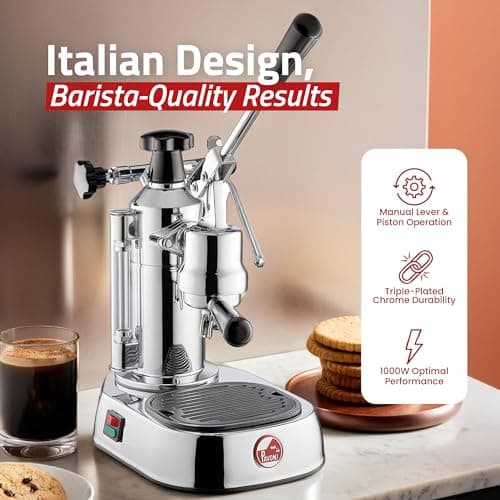La Pavoni EPC-8 Europiccola Lever Style Espresso Machine – Chrome & Silver – Manual Espresso Maker - 0.8 L Water Capacity, Authentic Italian Craftsmanship for Home Use