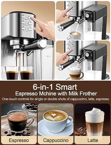 Mr. Coffee Espresso and Cappuccino Machine Stainless Steel Programmable Coffee Maker with Automatic Milk Frother 15-Bar Pump Ideal for Home Baristas