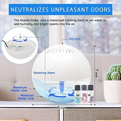 Daiwa Felicity Aroma Globe Air & Room Revitalizer - White Noise Aromatizer Air Washer Machine with Scented Oils, Water Air Revitalizer for Home and Office, with Calming Led Rainbow Led Lights