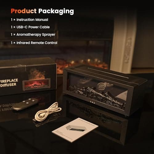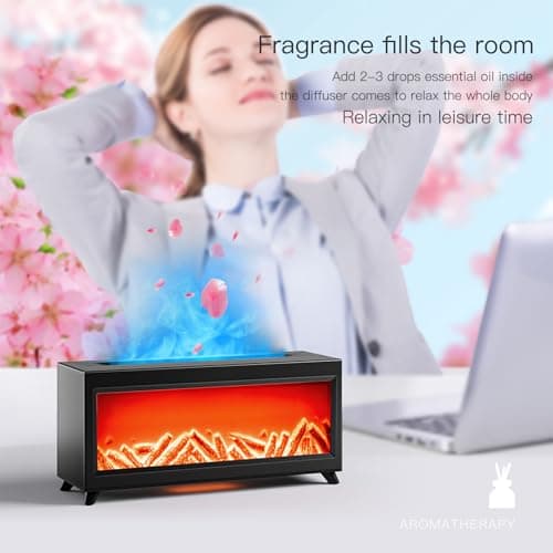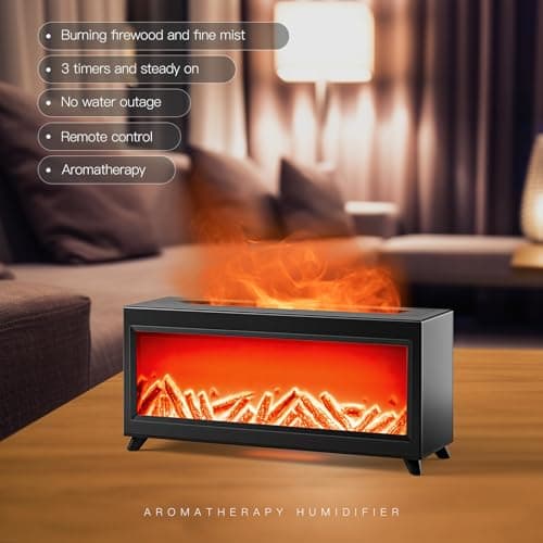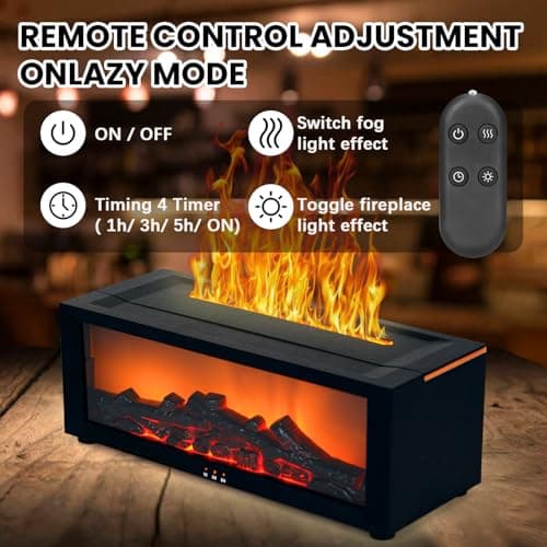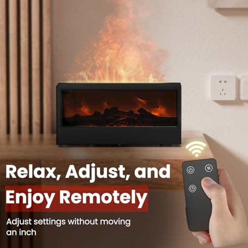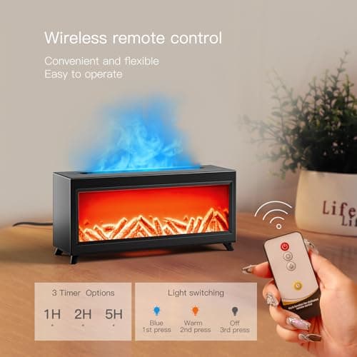 Fireplace Aroma Diffuser with Remote Control - 7 Color Changing LED Flame Essential Oil Diffuser, 1/3/5 Hour Timer, Ultrasonic Cool Mist Humidifier for Home, Office, Yoga Meditation, Spa