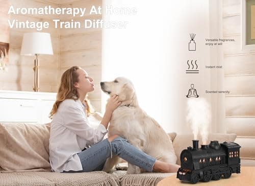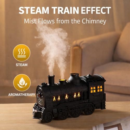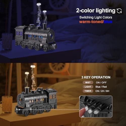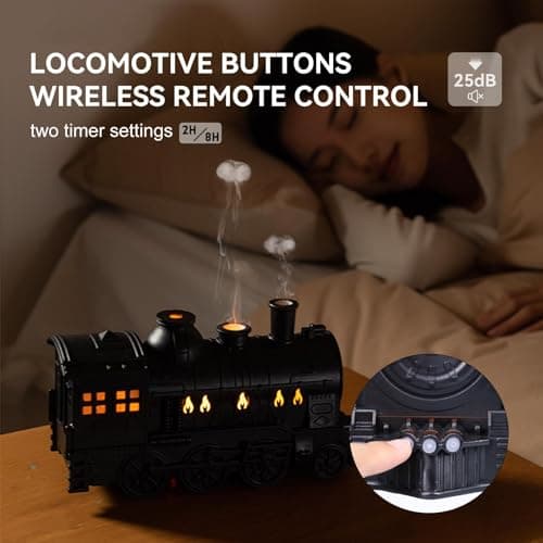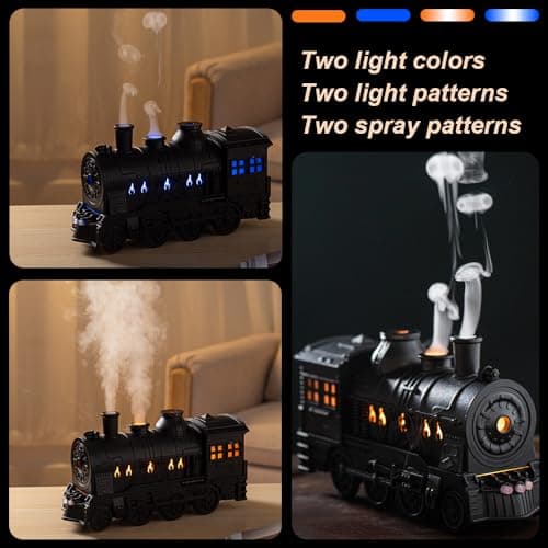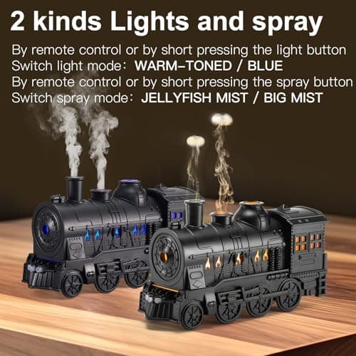 BLOIMP Essential Oil Diffuser Train Diffuser 300ml, Train Humidifier, Aromatherapy Diffuser Cool Mist Aromatherapy with 2 Light 2 Mist Mode Auto Shut-Off, Remote Included for Office Baby Home (Black)