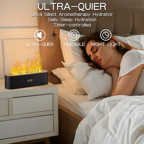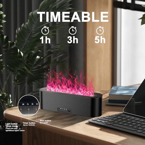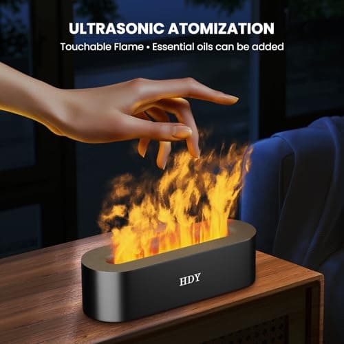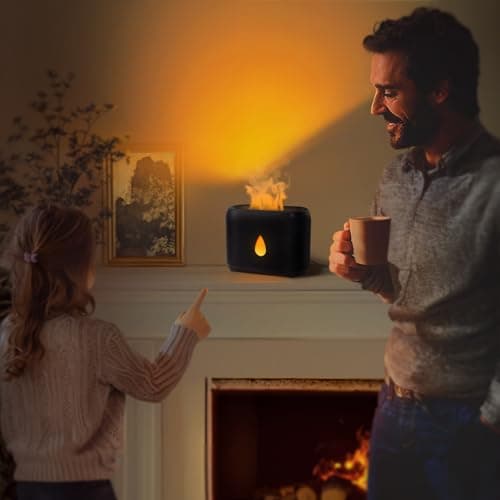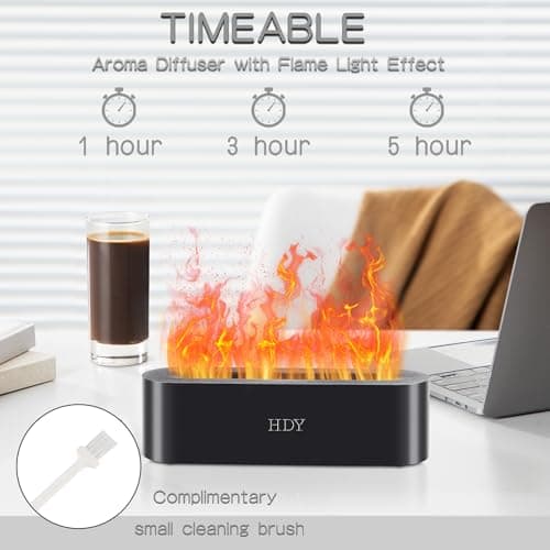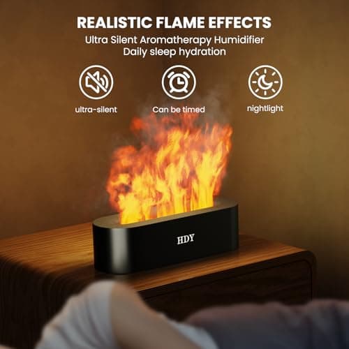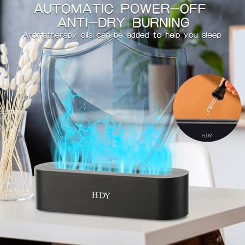 HDY 7 Color Flame Ultrasonic Humidifier - Color LED Essential Oil Diffuser, Silent Fireplace Design with Timer & Waterless Auto Shut-Off, 150ml Capacity for Home, Hotel & Office Use (Glossy Black)
