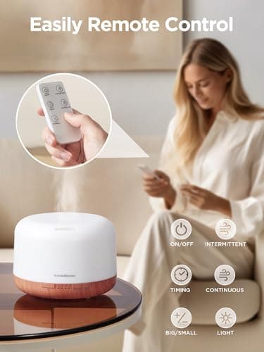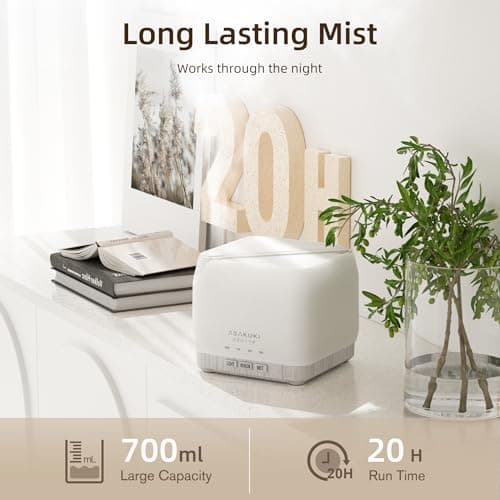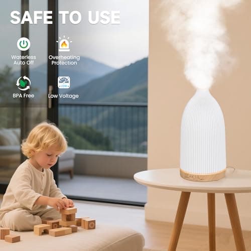 Essential Oil Diffuser for Bedroom, Quiet Humidifiers for Home, 250ML Aromatherapy Diffuser with 7 LED Colors & Safety Auto-Off Timer, Quiet for Bedroom, Baby Room, Hotel & Plants-White