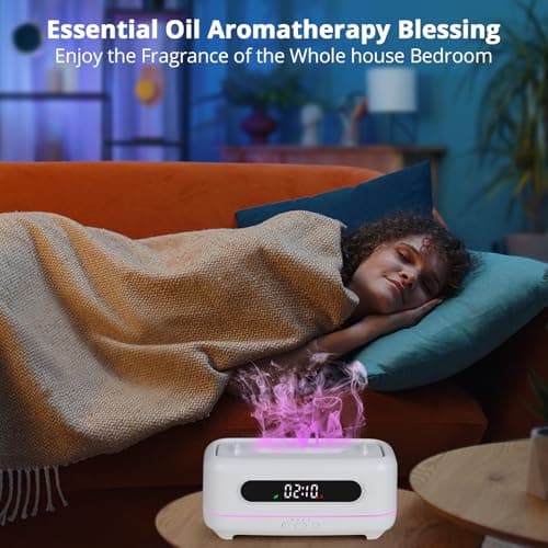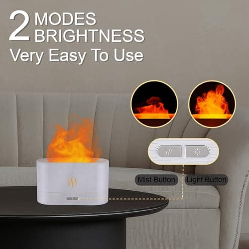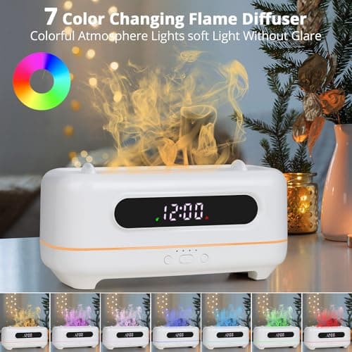 250ml Essential Oil Diffuser with Realistic Flame Effect, Ultrasonic Aromatherapy Humidifier with 7-Color Lights, Clock and Auto Shut-Off, Ideal for Home, Office, Bedroom (White)