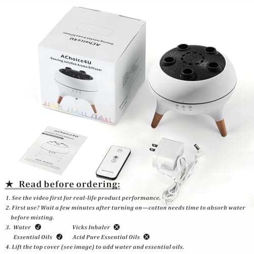 Essential Oil Diffuser by JOYFULNEST CO. – Dancing Jellyfish Aromatherapy Diffuser with 7 LED Lights, 2 Mist Modes, Remote Control and Auto-Off Timer for Bedroom, Office, & Home Décor, Humidifier