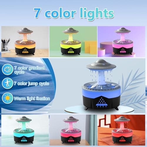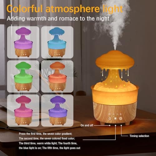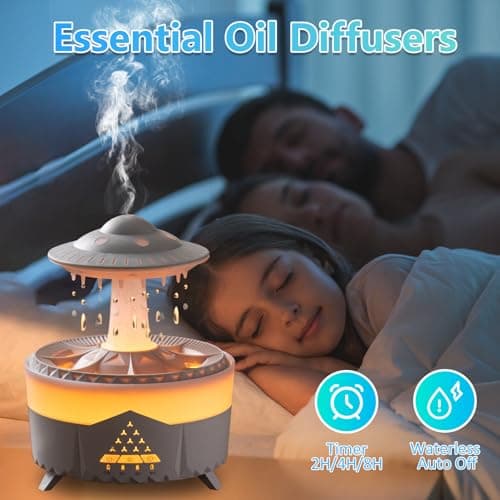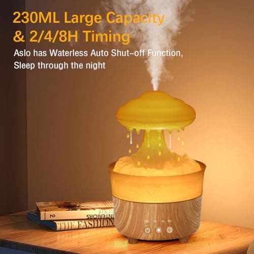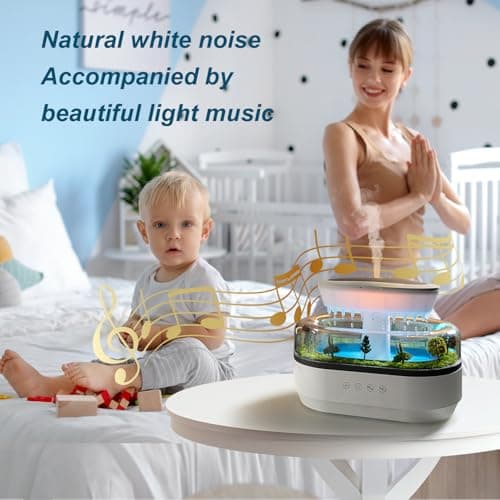 BLOIMP Essential Oil Diffuser 250ML Cloud Humidifier Rain Water Drip Diffuser Humidifier with Drip Music Micro Landscape Ultrasonic Diffuser for Bedroom Office Hotel (White Grey)