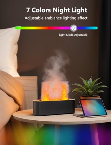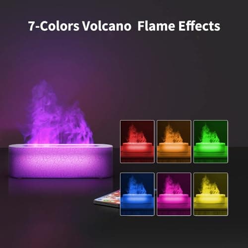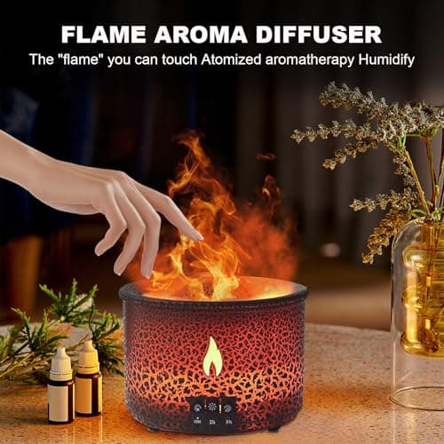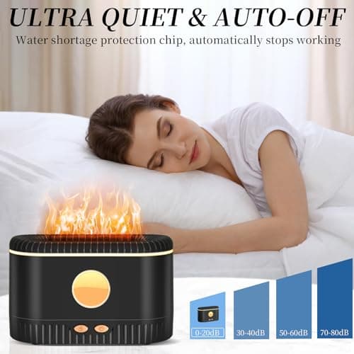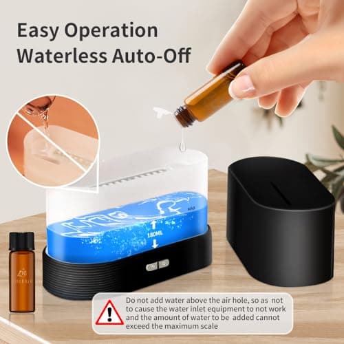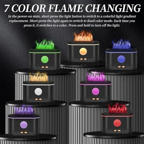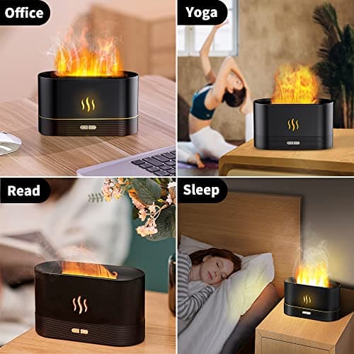 Colorful Flame Air Aroma Diffuser Humidifier, Upgraded 7 Flame Colors Noiseless Essential Oil Diffuser for Home,Office,Yoga with Auto-Off Protection 180mL (8Hours Black)