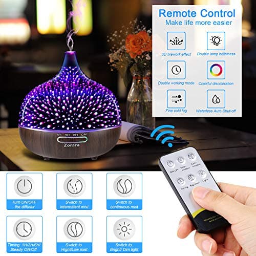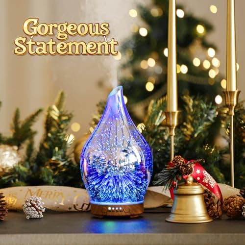 Essential Oil Diffuser 550ml Cool Mist Humidifier 3D Glass Ultrasonic Aromatherapy Humidifier with 7 Color Changing Led Lights, Waterless Auto Shut-Off, Adjustable Timer for Home Bedroom Office