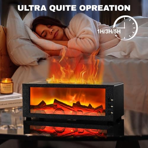YALEDI Essential Oil Diffuser, Fireplace Flame Fire Oil Diffuser, 250ml Himalayan Salt Lamp Diffuser, Cool Mist Aromatherapy Humidifier with 7 Colors Light, Timer & Auto-Off for Home, Room (Black)
