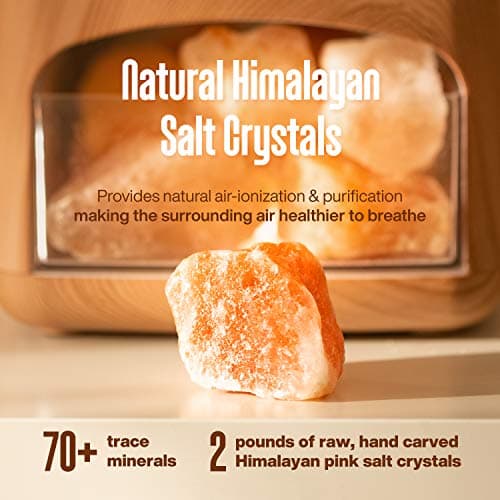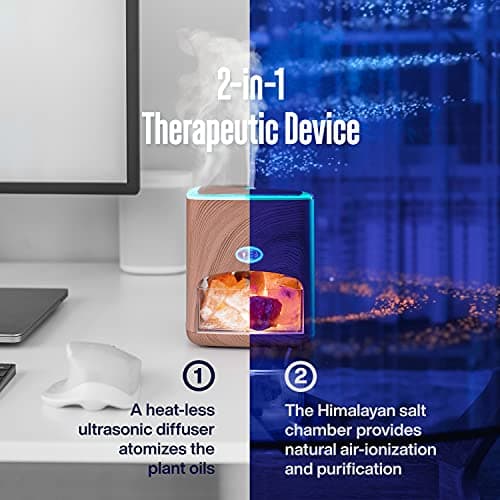 SALKING 2-in-1 Ultrasonic Essential Oil Diffuser & Himalayan Salt Lamp, Aromatherapy Diffuser Cool Mist Humidifier with Auto Off Function, 100% Pure Himalayan Pink Salt Rock, 150ml (Wooden Grain)